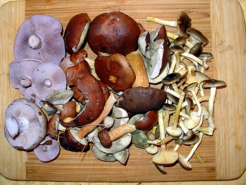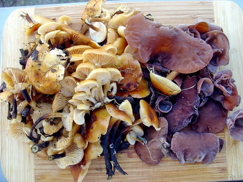 der gestrige Sonntagsspaziergang mit einem Bekannten war recht erfreulich. Wie auf dem Bild zu sehen ist, fanden wir für die Pfanne noch Maronen, Violette Rötelritterlinge und zu unserer Freude auch Frostschnecklinge.