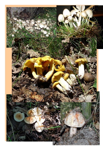 Pfifferlinge, Perlpilze, Waldfreundrüblinge, Rotfußröhrlinge sowie Ziegenlippe gehörten dazu. Desweiteren noch Parasole, Behangene Faserlinge, Netzstielige Hexenröhrlinge, einige Egerlinge (leider alle madig) und einige Täublinge (Speisetäubling u. Heringstäubling).