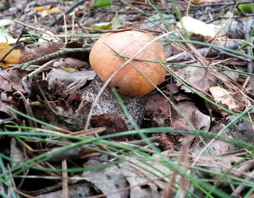 Gestern fanden wir drei kleine Heiderotkappen, eine Marone und zwei Körbchen Pfifferlinge.