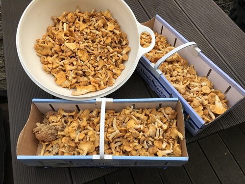 Die Pfifferlingsflut hält weiter an. Die Körbchen waren wieder prall gefüllt. Steinpilze habe ich auch so einige gefunden.