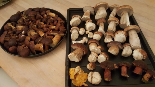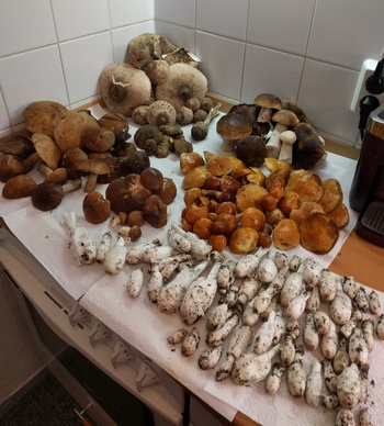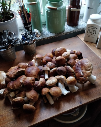 die herrlichen Steinpilze. Dazu kleine Maronen, viele Butterpilze ( die