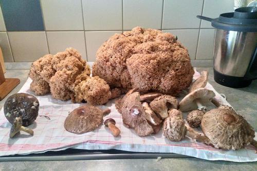 Außerdem haben wir eine einzige Marone, einen Steinpilz und viele Safranschirmpilze gefunden, die wir gar nicht alle wegtragen konnten.