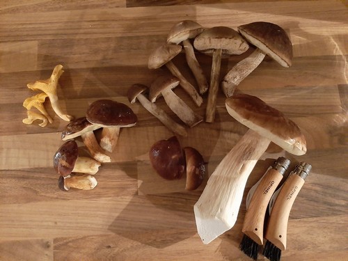 In knapp 4 Stunden(!) fanden wir die - vermutlich - letzten Pfifferlinge, wenige Maronenröhrlinge und tolle Birkenpilze mit festen Stielen und Hüten, die wir ausschließlich außerhalb des Waldes in offenem Gelände fanden. Hinzu kamen noch zwei Steinpilze, von denen das junge Exemplar einen vermadeten Stil hatte, während der große Steinpilzlümmel im perfekten Zustand fast 300 Gramm auf die Waage brachte.