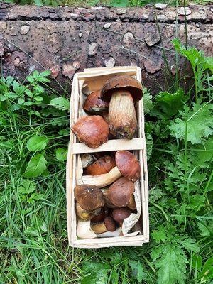 Wir haben uns sehr gefreut, die ersten Maronenröhrlinge sammeln zu können, auch wenn wir den größten Teil im Wald ließen. Denn viele waren bereits vermadet, von Schnecken angefressen oder aufgrund der hohen Feuchtigkeit angeschimmelt bzw. komplett verschimmelt.
