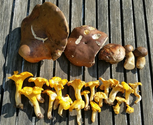 Foto: Solch einen leuchtenden Start ins Pilzjahr hat Dirk in Hamburg noch nicht erlebt. Der erste Pilzgang trug ihm gleich Pfifferlinge und Maronenröhrlinge ein. (Foto © Dirk A.)