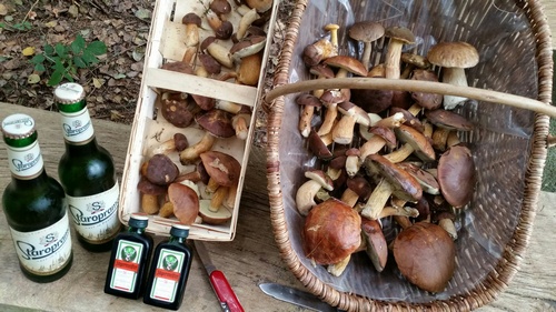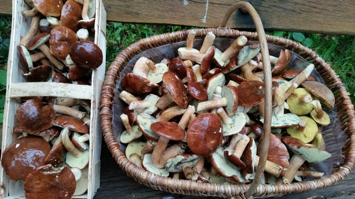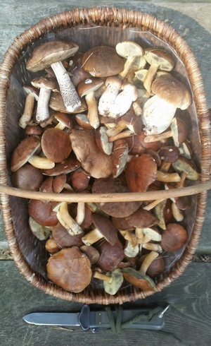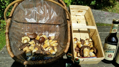 Foto: Volle Körbe, tolle Röhrlinge! Das Foto zeigt Dirks Ausbeute an Maronen und Ziegenlippen, die er und Mitsammler im Klövensteen fanden.