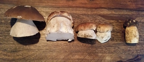 Am ersten Oktoberwochenende zeigte sich dann, dass der ausbleibende Niederschlag das Wachstum der Röhrlinge fast aussetzen ließ. Wir mussten ganz schön suchen, um noch einmal 30 Maronen und einige Ziegenlippen für eine Vorspeise zu finden.