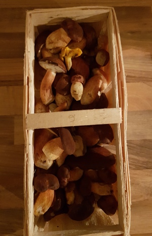 Wir hatten die Hoffnung, am darauffolgenden Wochenende an genau diesen Stellen noch einmal erfolgreich zu sein. Dieser Wunsch wurde uns allerdings von der Konkurrenz, die uns zuvorgekommen war, zunichte gemacht. Einen prächtigen Steinpilz hatten die Rivalen allerdings übersehen (Foto oben, Mitte). Also haben wir uns noch weiter von unseren bekannten Sammelstellen entfernt und wurden insgesamt mit einem ordentlichen Ergebnis an Röhrlingen belohnt.
