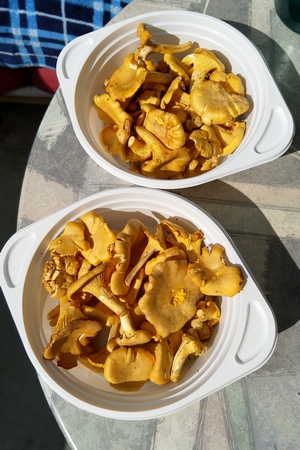 Anfang Oktober haben wir uns in den westlichsten Teil der Hansestadt Hamburg begeben, wo wir allerdings auf viele weitere Pilzsammler gestoßen sind. Im Gegensatz zum Klövensteen waren die Maronenröhrlinge hier eher Mangelware; dafür freuten wir uns über die vielleicht letzten heimischen Pfifferlinge des Jahres und einige junge Birkenpilze (1. Foto rechts).