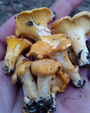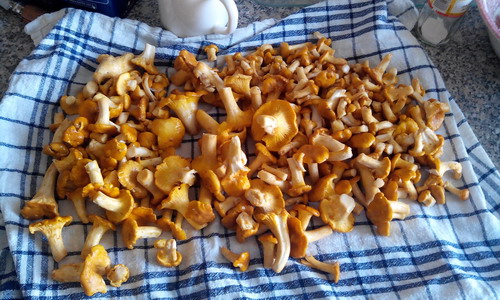 Doch dann kam alles ganz anders. Keine Glucke, dafür diese herrlichen Pfifferlinge, knapp ein Kilo! Ich suchte sie genau dort, wo sie vor rund einer Woche zaghaft erschienen waren. Und tatsächlich, der Regen hatte sie, wie erhofft, "erwachsen" werden lassen.