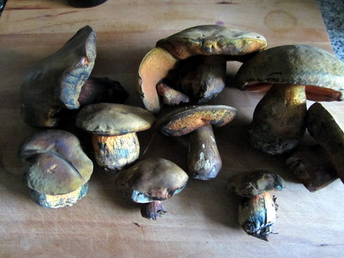 Foto: Dieser Trupp Netzstieliger Hexenröhrlinge stellte Olaf und seinen Hund. Die Begegnung ging, wie unschwer zu erkennen ist, zu Gunsten des Offenbacher Pilzfreundes aus. (Foto © Olaf F.)