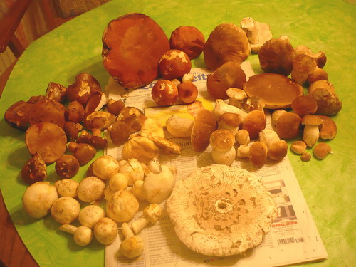 Foto: Steinpilze, Maronenröhrlinge, Parasolen, Anisegerlinge - Jürgens Ausbeute allein vom 27. August. (Foto © Jürgen)