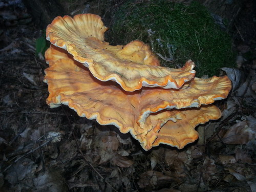 "Ein Sonntagsspaziergang im Zorner Wald im Rheingau-Taunus-Kreis wurde mit einem sehr schönen Schwefelporling belohnt. Jung und saftig wurde das Exemplar am Abend zu Pilzschnitzeln verarbeitet.