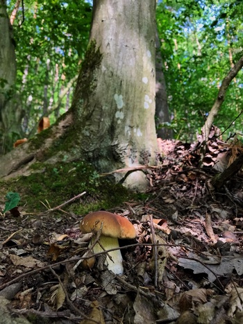 Zufrieden und entspannt trat ich den Rückweg an. Allerdings nicht ohne einen frommen Wunsch: ich hoffte insgeheim, an der Stelle mit dem Steinpilzschnittrest noch einen schönen dicken Steinpilz zu finden.