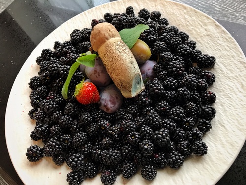 gegossen hat. Aus den Brombeeren wird eine leckere Marmelade mit Balsamico-Essig gemacht.