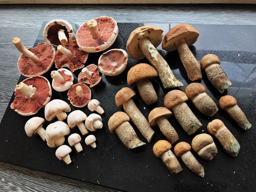 Ich war in zwei Wäldern, in denen ich seit einigen Wochen nicht mehr war, um mal wieder einen Überblick zu gewinnen. Es gab ein paar Rotfüße und Täublinge, aber letztere waren leider alle stark verwurmt.