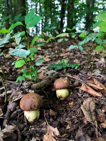 Deshalb war ich sehr überrascht, im Buche-Eiche-Hochwald auf wahre Prachtexemplare von Bronzeröhrlingen, auch Schwarzhütige Steinpilze genannt, zu stoßen.