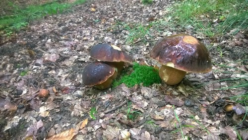 Als erstes ging es zu den Steinpilzplätzen. Hier lachten mich doch tatsächlich zwei Bronzeröhrlinge an (einer ist auf dem 1. Foto rechts zu sehen)! Grüngefelderte Täublinge hatte ich ja die Tage auch noch stehen gelassen. Also schnurstracks dorthin. Auch hier erwarteten mich noch drei brauchbare!