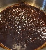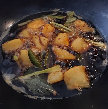Mein Saucenansatz bestand aus Geflügelfond, ausgekochten Birnen, die ich