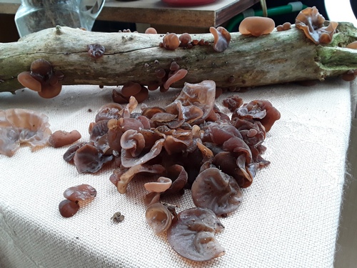 In den letzten Tagen nun kam wenigstens ein bisschen Nasses vom Himmel, worüber sich meine Judasohren im Garten besonders gefreut haben. So konnte ich gestern von ein paar Zweigen immerhin 200 Gramm ernten.