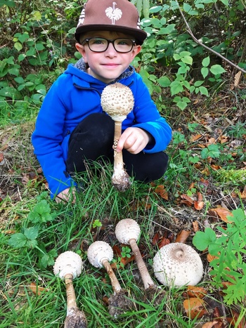Unsere Wälder sind derzeit pilzleer, weshalb sich Lijan umso mehr gefreut hat, die Pilze zu entdecken. Die bereits aufgeschirmten Parasole blieben bis auf einen Hut stehen, die Paukenschlegel haben wir uns für ein leckeres Mittagessen mitgenommen.