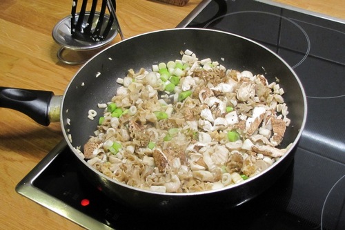 Foto rechts: Vorbereitung für das Morchel-Risotto: Die Morcheln werden zusammen mit Schalotten und Zwiebeln in Olivenöl angebraten.