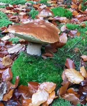 2 Fotos: Wunderschön, wie die Steinpilze im hohen Pilzherbst dastehen. (3 Fotos © Stefan)