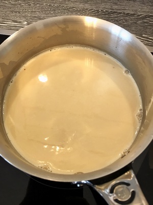 2. Foto rechts: Anschließend wurde die Sahne eingearbeitet. Parallel (hier nicht sichtbar) habe ich die Spargelspitzen und Spitzmorcheln kurz angebraten. Die angebratenen Spargelspitzen wurden anschließend noch gut 15 Minuten mitgekocht, so dass sie auch schön zart wurden.