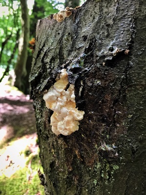 Außerdem hatte ich natürlich auf Pfifferlinge gehofft, die mich dann schließlich auch nicht völlig im Stich gelassen haben. Immerhin fand ich im Buchen-Hochwald fünf kleinere Exemplare im Bestzustand. Gut, für eine Pilzmahlzeit reichte das natürlich nicht, aber immerhin für die freudige Erkenntnis, dass ich meinen Pilzwäldern rund um Wetzlar nun langsam wieder regelmäßig einen Besuch abstatten muss. Ich freue mich schon drauf.