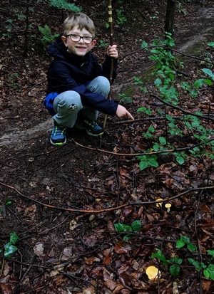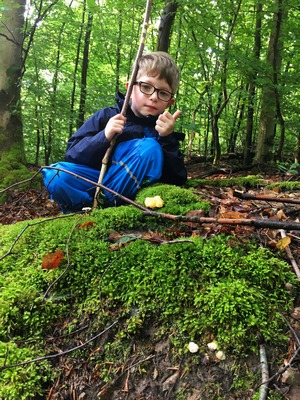 Lijan hatte sichtlich Spaß auf unserer Tour heute. Wir haben ihm wachsende Bereiche zugewiesen, in denen er alleine sammeln konnte. So durfte er die Pfifferlinge