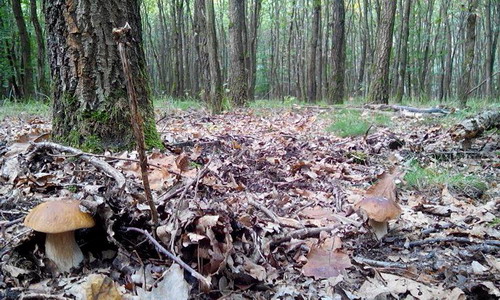 Foto: Wenn wir eine Lichtung betreten und sehen sie so dastehen, überkommt uns Glücksgefühl. Diese zwei Steinpilze stehen da, als warteten sie schon auf den Pilzsammler. Sie bieten sich an, als wollten sie in unseren Korb. Kein Geziere, kein Gezicke. Die Kunst des Sammlers besteht weniger darin, sie zu entdecken, sondern den verborgenen Waldwinkel, in dem sie wachsen. ( Foto © Massimo A.)