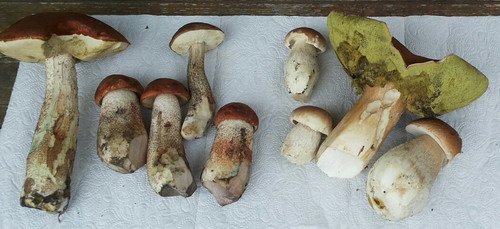 heute ging es hier endlich richtig ab! Ich habe 70 Steinpilze gefunden, acht Kilogramm, allesamt ganz jung und frisch und knackig; bei allen - bis auf zwei - war der Schwamm ganz weiß.