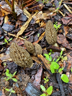 Mia und ich haben heute Nachmittag wieder unsere Mulchstelle nach Spitzmorcheln abgesucht und wurden trotz des ergiebigen Dauerregens der vergangenen Tage bei uns mit reichlich frischen Spitzmorcheln belohnt.