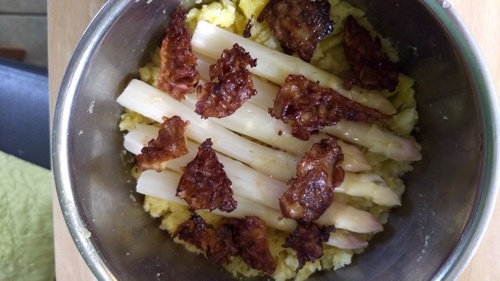 von meinem letzten Morchelfund habe ich mir heute, am Veggietag, ein einfaches, aber zu meiner Überraschung sehr schmackhaftes Gericht zubereitet: Spargel mit in Butter gebratenen Morcheln, leicht gesalzen, auf Kartoffelstampf. Für das Spargelkochwasser fand auch die von Heinz-Wilhelm im Pilzticker 143 angesprochene 🍋 Verwendung.(Foto © Peter C.)