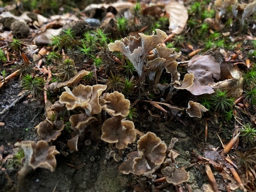 Foto: Die Krausen Leistlinge sind sehr unscheinbar auf dem Waldboden und erfordern bei der Lese große Aufmerksamkeit, damit sie nicht zertreten werden. Diese hier sind Teil einer großen Gesellschaft, die sich auf etwa 15 Quadratmeter verteilt, so Stefan.