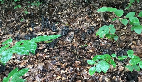 Foto: Nach einigen Ausfalljahren wachsen die Totentrompeten nördlich Kassel wieder in Massen. Viele junge hat Karin für ihre nächste Ernte stehen gelassen. (Foto © Karin)