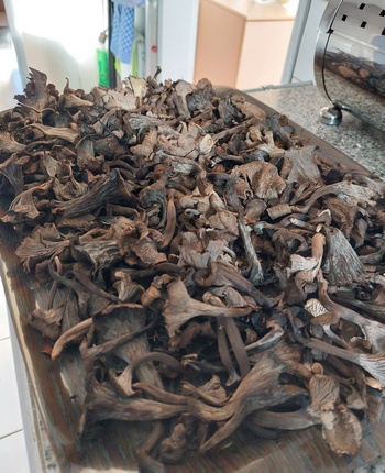 "Es tut sich was im Hardtwald (Hochtaunuskreis). Offensichtlich sind wir endlich wieder mal in einem Tröten-Jahr! Die Totentrompeten fanden sich bereits im September ein, gefolgt von Grauen Kraterellen, und an der bislang einzigen bekannten Stelle im Hardtwald habe ich endlich mal wieder eine Handvoll Pfifferlinge erbeutet!