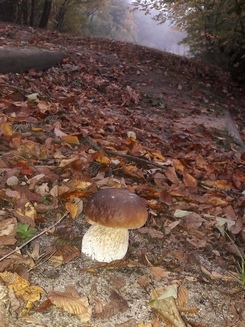 Am Ende meines Spaziergangs fand ich noch einen schönen Steinpilz, der mein Herz regelrecht zum Klopfen brachte. Trotz konzentrierter Suche nach weiteren blieb es bei dem einen. Um so mehr genoss ich es aber sogar, den Einzelgänger in seinem schönen Dasein zu bestaunen.