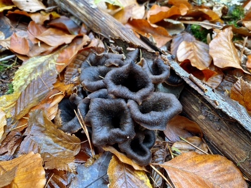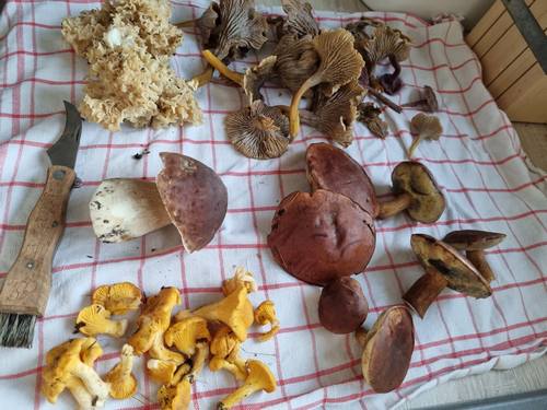 Dazu zählten prächtige Herbsttrompeten, Amethystschuppige Pfifferlinge, Orangerote Stoppelpilze und Semmelstoppelpilze, Steinpilze, Trompetenpfifferlinge und Flockenstielige Hexenröhrlinge.