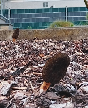 nun sind auch im Main-Kinzig-Kreis die ersten Spitzmorcheln da. Die Zipfelmützen aus einem gemulchten Beet lassen sich eine Woche früher blicken als vergangenes Jahr.