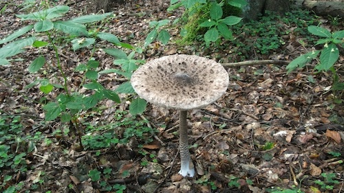 Foto: Und die stets erwünschte Parasole stand auch wieder da. Das hat Jürgen zum Ende seines Pilzganges besonders gefreut. (2 Fotos © Jürgen)