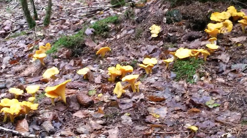 "Gemarkung Lichtenfels-Dalwigksthal im Landkreis Waldeck-Frankenberg: Herbsttrompeten, Pfifferlinge und Semmelstoppelpilze."