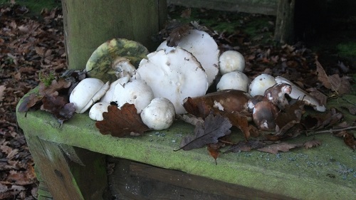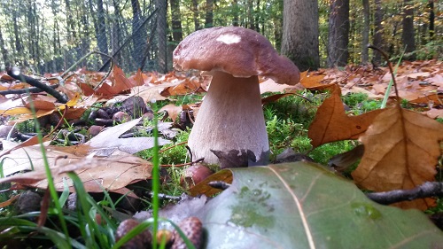Die kleinen festen, die noch in der Nähe standen, sah er gar nicht. Okay, sie sind im Laub nicht ganz leicht zu erkennen mit ihren finsteren Hüten. Aber der Pilzkenner...
