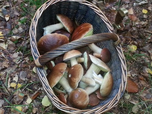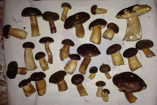 Das Ergebniss siehst Du auf dem Foto. Im Korb sind Reizker, Violette Rötelritterlinge, Violette Lacktrichterlinge, jede Menge Maronen sowie vier Steinpilze.
