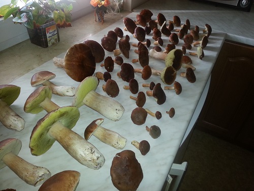 Wir fanden Reizker, Maronen, Steinpilze, Herbstlorcheln, Violette Rötelritterlinge und Violette Lacktrichterlinge.