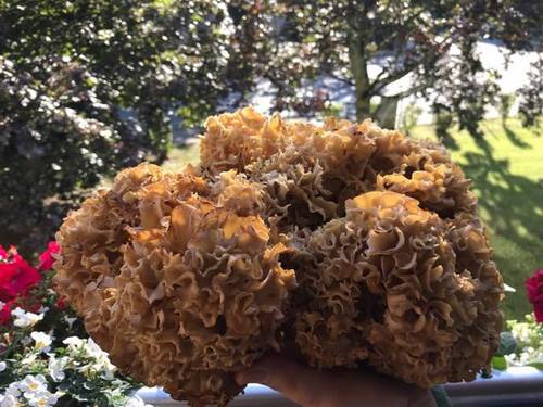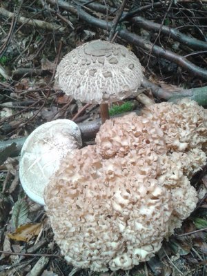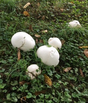 Die Krausen Glucken wachsen bei uns immer noch sehr gut. Allerdings kommen sie einem langsam zu den Ohren raus. Nur gut, dass die vielen Riesenboviste (Foto rechts) da eine willkommene Abwechslung bieten.