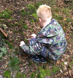 2 Fotos: Die Maronen (Foto links) waren leider zum Teil schon verwurmt oder angeknabbert. Julius (rechts) schaute genau hin, ob sie noch für den Pilzkorb taugten. (2 Fotos © Julius, 1 Andrea)