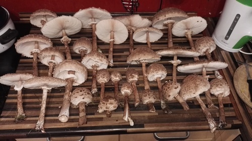 Foto: Die besten der über 50 Parasole, die auf einer Wiese am Waldrand wuchsen, hat Mario eingesackt. Er hat sie auf dreierlei Art verwertet. (Foto © Mario)