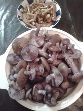 Bei meinem obligatorischen Waldgang habe ich anschließend dennoch was gefunden. Schöne Violette Rötelritterlinge und noch eine Handvoll Hallimasch. Sind sind gesäubert auf dem Foto rechts zu sehen.