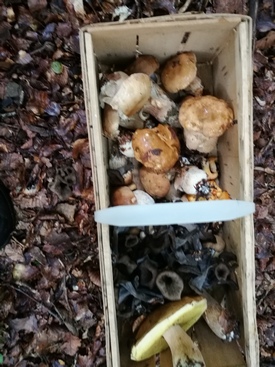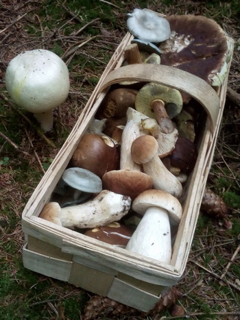 In meinem sah man nach dem heutigen Pilzgang schöne Steinpilze, Maronen, Grünen Anistrichterling und verdeckt zwei kleine Flockenstielige Hexen. Auch die Parasole, Safranschirmlinge und Fichtenreizker springen geradezu aus dem Boden. Pfifferlinge und Semmelstoppelpilze sind da. Herz, was willst du mehr?